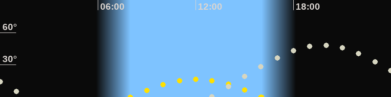 | Höchster Sonnenstand (Kulmination) | 12:01 Uhr (h = 16.6°) |