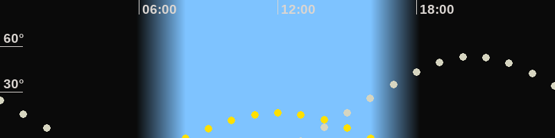 | Sonnenaufgang | 08:00 Uhr im Südosten (αAz = 126.8°) |