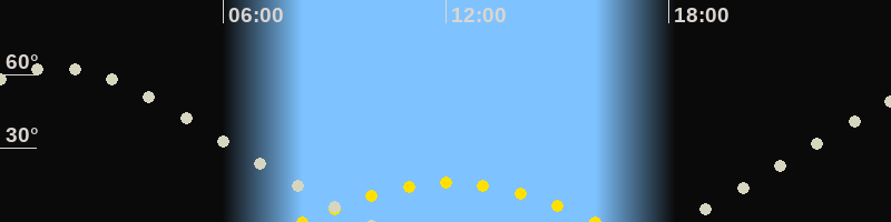 | Höchster Sonnenstand (Kulmination) | 12:05 Uhr (h = 16°) |