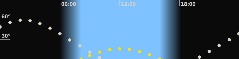 | Höchster Sonnenstand (Kulmination) | 12:05 Uhr (h = 15.9°) |