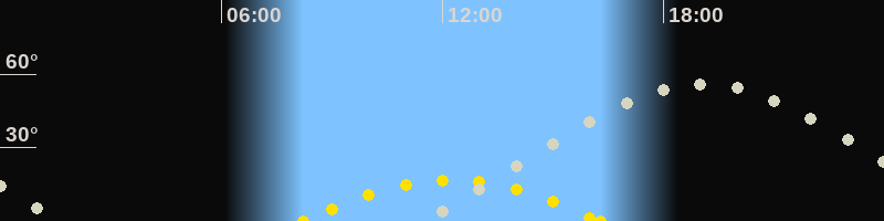 | Höchster Sonnenstand (Kulmination) | 12:15 Uhr (h = 16.7°) |