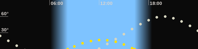 Höchster Stand (Kulmination)19:45 Uhr (h=59.7°)