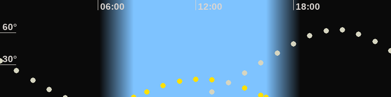 | Höchster Sonnenstand (Kulmination) | 12:16 Uhr (h = 16.9°) |