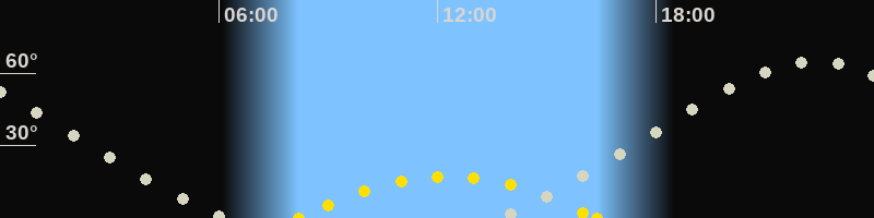 | Höchster Sonnenstand (Kulmination) | 12:17 Uhr (h = 17.2°) |