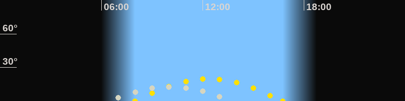 | Höchster Sonnenstand (Kulmination) | 12:21 Uhr (h = 19.9°) |