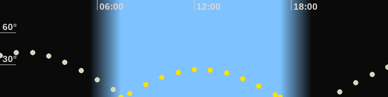 Höchster Sonnenstand (Kulmination)12:24 Uhr (h = 25.7°)