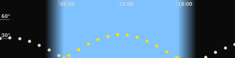 Höchster Sonnenstand (Kulmination)12:19 Uhr (h = 36.4°)
