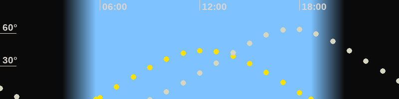 | Sonnenaufgang | 05:46 Uhr im Osten (αAz = 81.6°) |