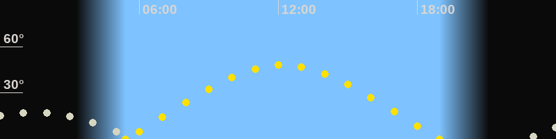 | Höchster Sonnenstand (Kulmination) | 12:11 Uhr (h = 48°) |