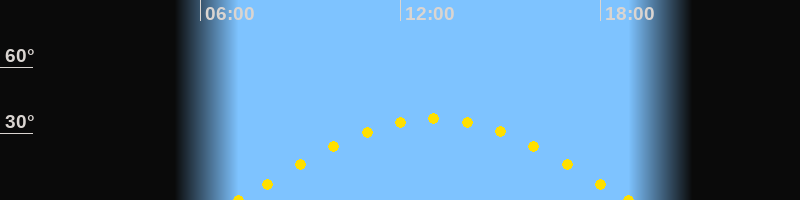 Höchster Sonnenstand (Kulmination)13:00 Uhr (h = 36.7°)