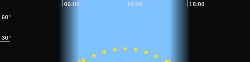 Höchster Sonnenstand (Kulmination)11:56 Uhr (h = 19.3°)