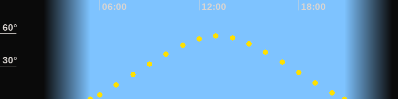 Höchster Sonnenstand (Kulmination)13:06 Uhr (h = 57.6°)