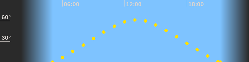 Höchster Sonnenstand (Kulmination)13:08 Uhr (h = 61.4°)