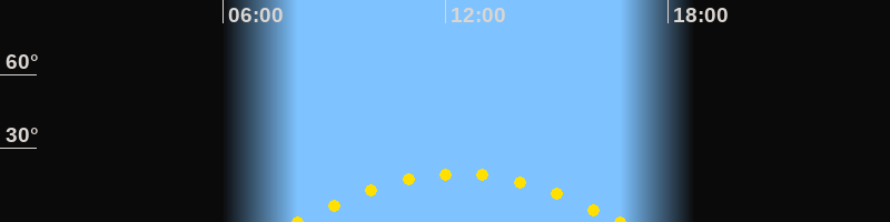 Höchster Sonnenstand (Kulmination)12:21 Uhr (h = 19.6°)