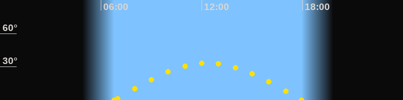 Höchster Sonnenstand (Kulmination)12:21 Uhr (h = 33.3°)
