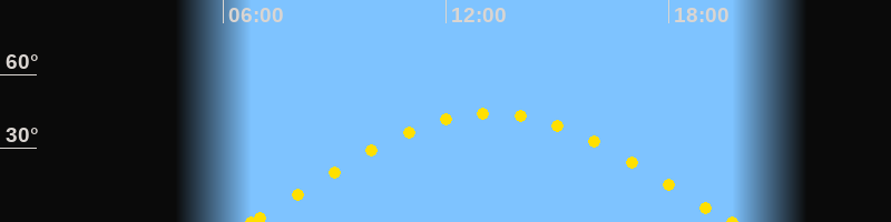 Höchster Sonnenstand (Kulmination)13:13 Uhr (h = 44.4°)