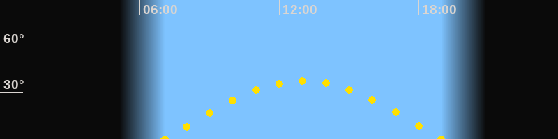 Höchster Sonnenstand (Kulmination)13:01 Uhr (h = 37.8°)