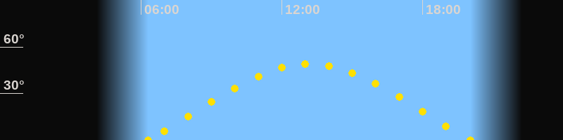 Sonnenaufgang06:18 Uhr im Osten (αAz = 73.8°)