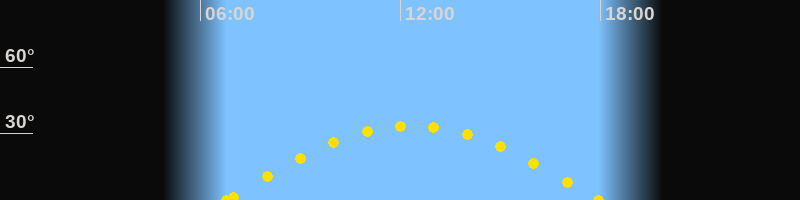 Höchster Sonnenstand (Kulmination)12:21 Uhr (h = 33.6°)