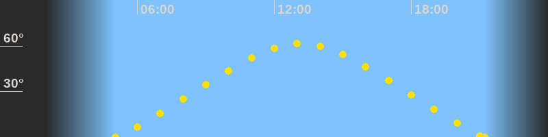 Höchster Sonnenstand (Kulmination)13:08 Uhr (h = 61.6°)