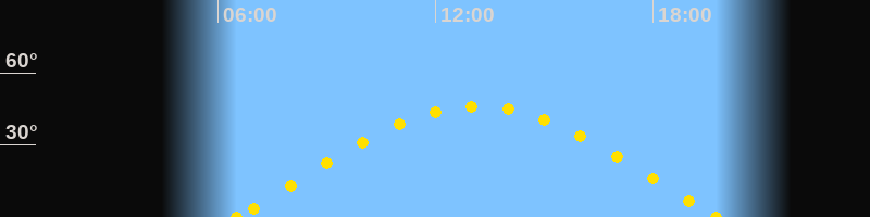 Höchster Sonnenstand (Kulmination)13:09 Uhr (h = 46.1°)