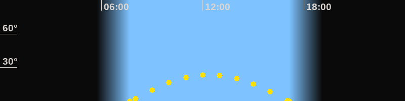 Höchster Sonnenstand (Kulmination)12:24 Uhr (h = 23.6°)