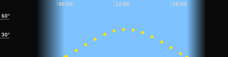 Höchster Sonnenstand (Kulmination)13:14 Uhr (h = 43.7°)
