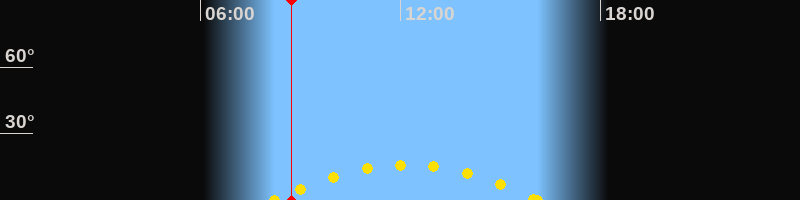 Höchster Sonnenstand (Kulmination)12:10 Uhr (h = 15.9°)