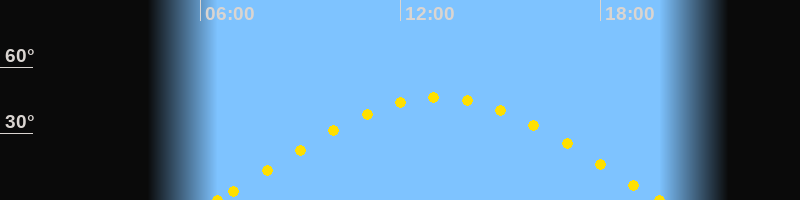 Sonnenaufgang06:30 Uhr im Osten (αAz = 77.9°)