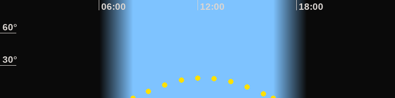 Höchster Sonnenstand (Kulmination)12:20 Uhr (h = 18.7°)