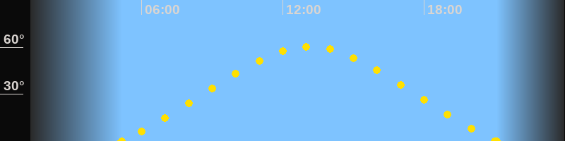 Höchster Sonnenstand (Kulmination)13:07 Uhr (h = 60.5°)