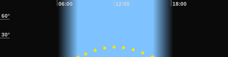 Höchster Sonnenstand (Kulmination)12:08 Uhr (h = 15.8°)
