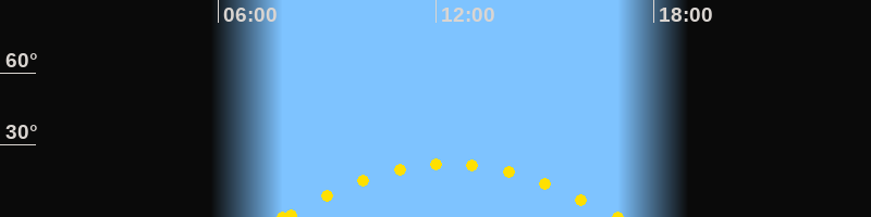 Höchster Sonnenstand (Kulmination)12:23 Uhr (h = 22.3°)