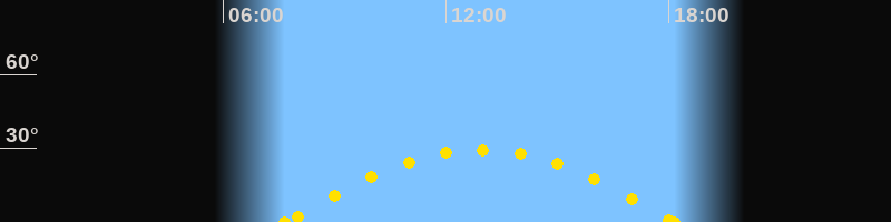 Höchster Sonnenstand (Kulmination)12:55 Uhr (h = 29.4°)