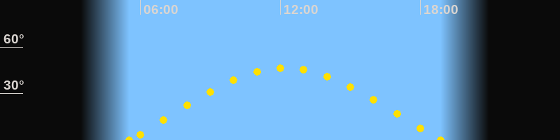 Höchster Sonnenstand (Kulmination)12:12 Uhr (h = 46.6°)