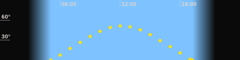 Sonnenuntergang19:14 Uhr im Westen (αAz = 290.3°)