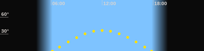 Höchster Sonnenstand (Kulmination)12:00 Uhr (h = 36.5°)
