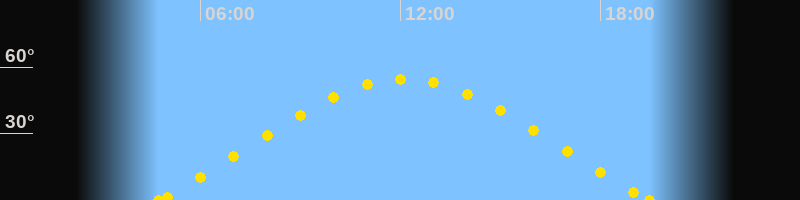 Sonnenaufgang04:45 Uhr im Nordosten (αAz = 64.8°)