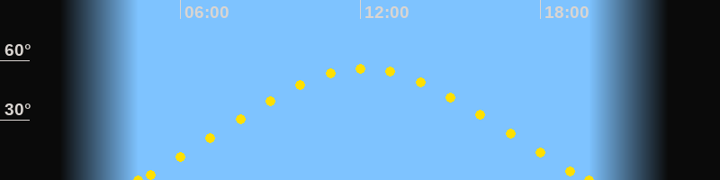 Höchster Sonnenstand (Kulmination)12:06 Uhr (h = 56°)