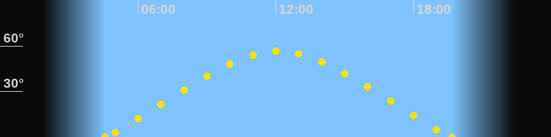 Höchster Sonnenstand (Kulmination)12:06 Uhr (h = 56.5°)