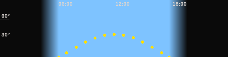 Höchster Sonnenstand (Kulmination)12:00 Uhr (h = 36.2°)