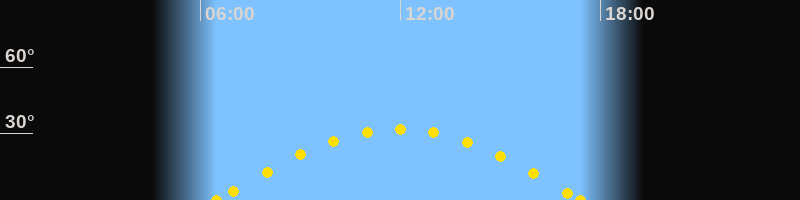 Höchster Sonnenstand (Kulmination)11:56 Uhr (h = 32°)