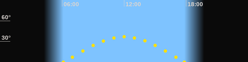 Höchster Sonnenstand (Kulmination)12:00 Uhr (h = 36.7°)