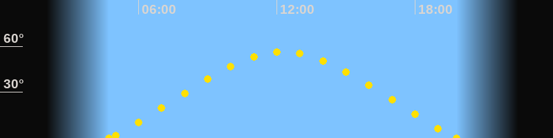 Höchster Sonnenstand (Kulmination)12:16 Uhr (h = 56.4°)