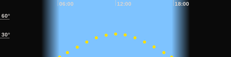 Höchster Sonnenstand (Kulmination)12:00 Uhr (h = 36.4°)