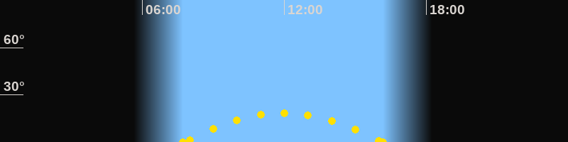Höchster Sonnenstand (Kulmination)11:57 Uhr (h = 18.5°)