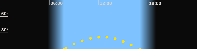 Höchster Sonnenstand (Kulmination)12:23 Uhr (h = 22.4°)