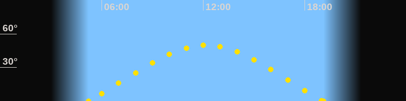 Höchster Sonnenstand (Kulmination)12:09 Uhr (h = 49.9°)