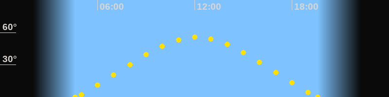 Höchster Sonnenstand (Kulmination)12:06 Uhr (h = 55.7°)