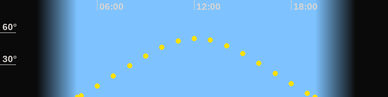 Sonnenaufgang04:46 Uhr im Nordosten (αAz = 64.9°)
